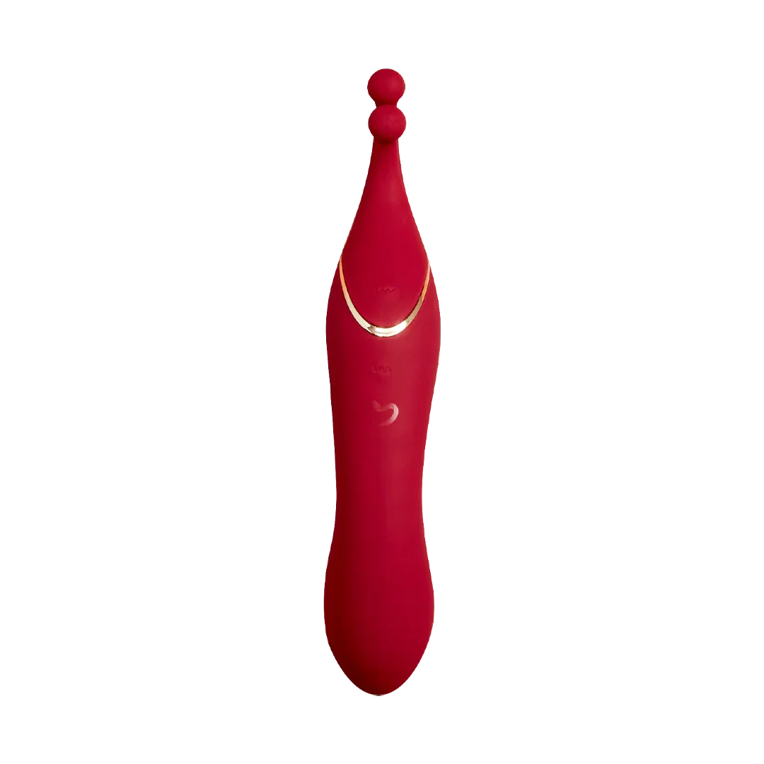 This dual-ended toy? Your journey to pleasure. Multiple tips on one end and a firm shaft on the other, this vibrator lets you tease and touch your way over the edge no matter what you're in the mood for. Give your G-spot (or your partner's!) full attention with the stimulating ridge along the toy's curved shaft. Or make the clitoris and sensitive spots the next stop on your pleasure cruise with the rounded tips at the other end of the toy.