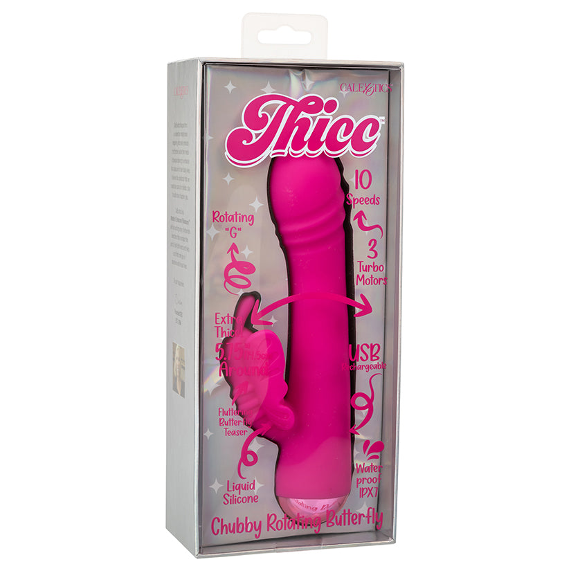 Experience unparalleled pleasure with the Thicc Chubby Rotating Butterfly. This turbo-charged triple motor massager features an ultra-thick 5.75 inch shaft circumference, designed to hug every curve and provide deep, fulfilling sensations that will leave you breathless. The massager boasts a rotating G shaft and fluttering teaser, offering a unique combination of stimulation. With 10 escalating speeds of vibration and rotating action, you can explore a range of intensities and rhythms. The Liquid Silicone construction ensures a softer, smoother, and more durable touch, while its waterproof design with an IPX7 submersible rating makes it perfect for bath and shower play.